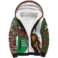 Burundi Lion Tribal Pattern Sherpa Hoodie with National Motto Unité Travail Progrès TS04