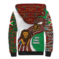 Burundi Lion Tribal Pattern Sherpa Hoodie with National Motto Unité Travail Progrès