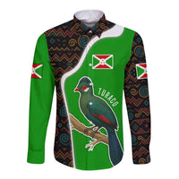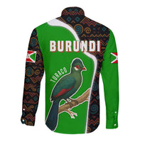 Burundi Turaco Long Sleeve Button Shirt with National Bird and Flag Pattern