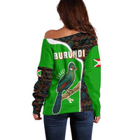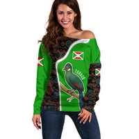 Burundi Turaco Off Shoulder Sweater with National Bird and Flag Pattern TS04