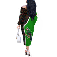 Burundi Turaco Off The Shoulder Long Sleeve Dress with National Bird and Flag Pattern