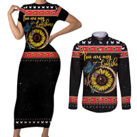 Butterfly Christmas Yall Couples Matching Short Sleeve Bodycon Dress and Long Sleeve Button Shirt You Are My Sunshine