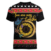 Butterfly Christmas Yall Women V-Neck T-Shirt You Are My Sunshine