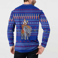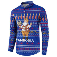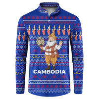 Cambodia Christmas Button Sweatshirt with Santa in Traditional Outfit Elephant Dancers and Snowflake Pattern TS04