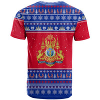 Cambodia Christmas T Shirt with Buffalo Children Holiday Tree Snowflakes and Khmer Pattern Design TS04