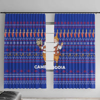 Cambodia Christmas Window Curtain with Santa in Traditional Outfit Elephant Dancers and Snowflake Pattern