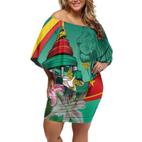 Cameroon National Day Family Matching Off Shoulder Short Dress and Hawaiian Shirt Cameroun Reunification Monument Lily Flowers