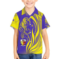 Campione d’Italia Hawaiian Shirt with Yellow Horse Graphic and Purple Flame Crest