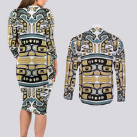 Canada Chilkat Pattern Couples Matching Long Sleeve Bodycon Dress and Long Sleeve Button Shirt Haida Spirit