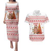 Canada Christmas Couples Matching Puletasi and Hawaiian Shirt with Beaver Maple Tree Ice Wine Pie and Red White Knit Pattern Design