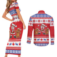 Canada Christmas Couples Matching Short Sleeve Bodycon Dress and Long Sleeve Button Shirt Dabbing Santa Groundhog Funny Style