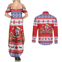 Canada Christmas Couples Matching Summer Maxi Dress and Long Sleeve Button Shirt Dabbing Santa Groundhog Funny Style