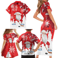 Canada Christmas Family Matching Short Sleeve Bodycon Dress and Hawaiian Shirt Santa Play Hockey - Winter Forest