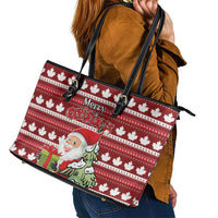 Canada Christmas Leather Tote Bag Maple Leaf Pattern