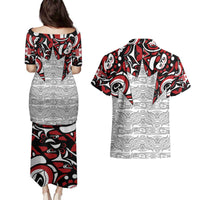 Canada Couples Matching Puletasi and Hawaiian Shirt Haida Art-Inspired Pattern Design