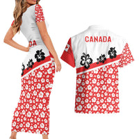 Canada Couples Matching Short Sleeve Bodycon Dress and Hawaiian Shirt Summer Hibiscus Tropical Flower