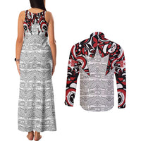 Canada Couples Matching Tank Maxi Dress and Long Sleeve Button Shirt Haida Art-Inspired Pattern Design