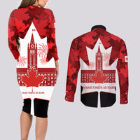 Canada Day Couples Matching Long Sleeve Bodycon Dress and Long Sleeve Button Shirt 2024 Canadian Maple Leaf Pattern LT14
