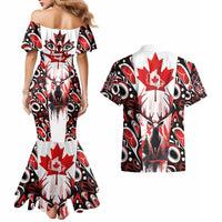 Canada Day Couples Matching Mermaid Dress and Hawaiian Shirt The Forest Moose and Maple Leaves-Haida Pattern
