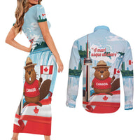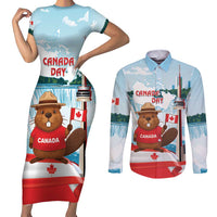 Canada Day Couples Matching Short Sleeve Bodycon Dress and Long Sleeve Button Shirt Cute Beaver With Flag