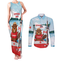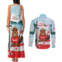 Canada Day Couples Matching Tank Maxi Dress and Long Sleeve Button Shirt Cute Beaver With Flag