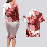 Canada Flag Couples Matching Long Sleeve Bodycon Dress and Hawaiian Shirt Caribou Design with National Symbol TS04