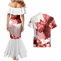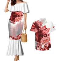 Canada Flag Couples Matching Mermaid Dress and Hawaiian Shirt Caribou Design with National Symbol