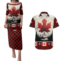 Canada Flag Couples Matching Puletasi and Hawaiian Shirt Maple Leaf & Plaid Pattern Design TS04