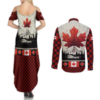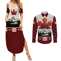 Canada Flag Couples Matching Summer Maxi Dress and Long Sleeve Button Shirt Maple Leaf & Plaid Pattern Design TS04