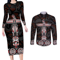 Canada Haida Totem Couples Matching Long Sleeve Bodycon Dress and Long Sleeve Button Shirt Haida Spirit