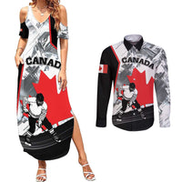Canada Hockey Couples Matching Summer Maxi Dress and Long Sleeve Button Shirt Maple Leaf Sport Style