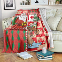 Canadian Christmas Blanket A Merry Xmas Santa and Funny Moose