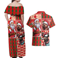 Canadian Christmas Couples Matching Off Shoulder Maxi Dress and Hawaiian Shirt Santa Hoho Holiday - A Beaver and Moose