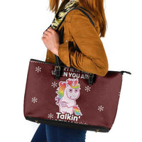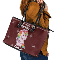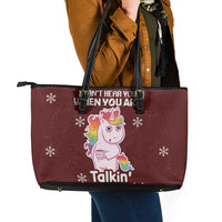 Cant Hear You Unicorn Christmas Leather Tote Bag