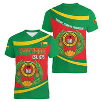Cape Verde 1975-1992 Women V-Neck T-Shirt Unidade Trabalho Progresso LT14