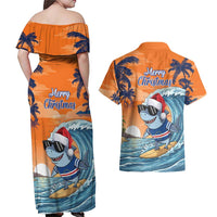 Cape Verde Christmas Couples Matching Off Shoulder Maxi Dress and Hawaiian Shirt Shark Surfing Holiday Beach Style