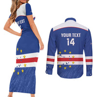 Cape Verde Football Custom Couples Matching Short Sleeve Bodycon Dress and Long Sleeve Button Shirt Come On Tubaroes Azuis Shark LT14
