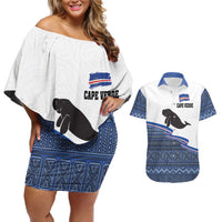 Cape Verde Manatee Couples Matching Off Shoulder Short Dress and Hawaiian Shirt Pattern With Flag Color