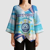 Add a chic touch to your wardrobe with the Cape Verde Morabeza Kimono Sleeve Blouse Island Welcome from Wonder Print Shop. Designed for versatility, this V-neck blouse features flowing kimono-style sleeves and a relaxed fit — perfect for both casual and dressy occasions. Crafted with premium polyester fabric, it offers a soft, lightweight feel for all-day comfort.