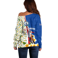 Cape Verde Off Shoulder Sweater with Kingfisher Bird Floral Flag Spirit