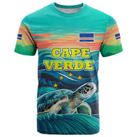 Cape Verde T Shirt with Loggerhead Sea Turtle Ocean Sunset Spirit