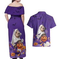Capy-Boo-Ra Halloween Couples Matching Off Shoulder Maxi Dress and Hawaiian Shirt Bats And Pumpkins Funny Style