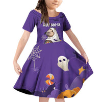 Capy-Boo-Ra Halloween Family Matching Off Shoulder Short Dress and Hawaiian Shirt Bats And Pumpkins Funny Style