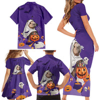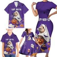 Capy-Boo-Ra Halloween Family Matching Short Sleeve Bodycon Dress and Hawaiian Shirt Bats And Pumpkins Funny Style