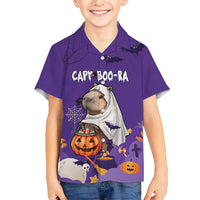 Capy-Boo-Ra Halloween Family Matching Short Sleeve Bodycon Dress and Hawaiian Shirt Bats And Pumpkins Funny Style LT18