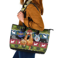 Cat Hanging on Xmas Tree Christmas Leather Tote Bag Xmas Holiday Patterns TS04