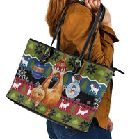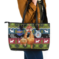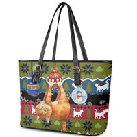 Cat Hanging on Xmas Tree Christmas Leather Tote Bag Xmas Holiday Patterns
