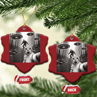 Cat Selfie With Bigfoot UFO Christmas Ornament Funny Cat Lover Gifts
