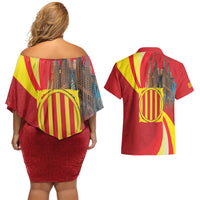 Catalonia Spain Couples Matching Off Shoulder Short Dress and Hawaiian Shirt Basilica de la Sagrada Familia LT18