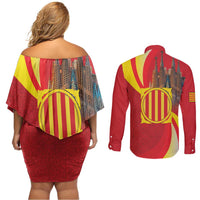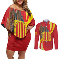 Catalonia Spain Couples Matching Off Shoulder Short Dress and Long Sleeve Button Shirt Basilica de la Sagrada Familia LT18